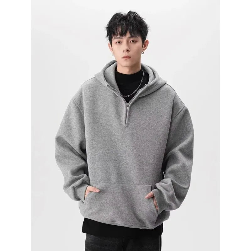 Men's Clothing American Half-zip Hooded Sweatshirt for Men Trendy Brand Spring Autumn Sports Versatile